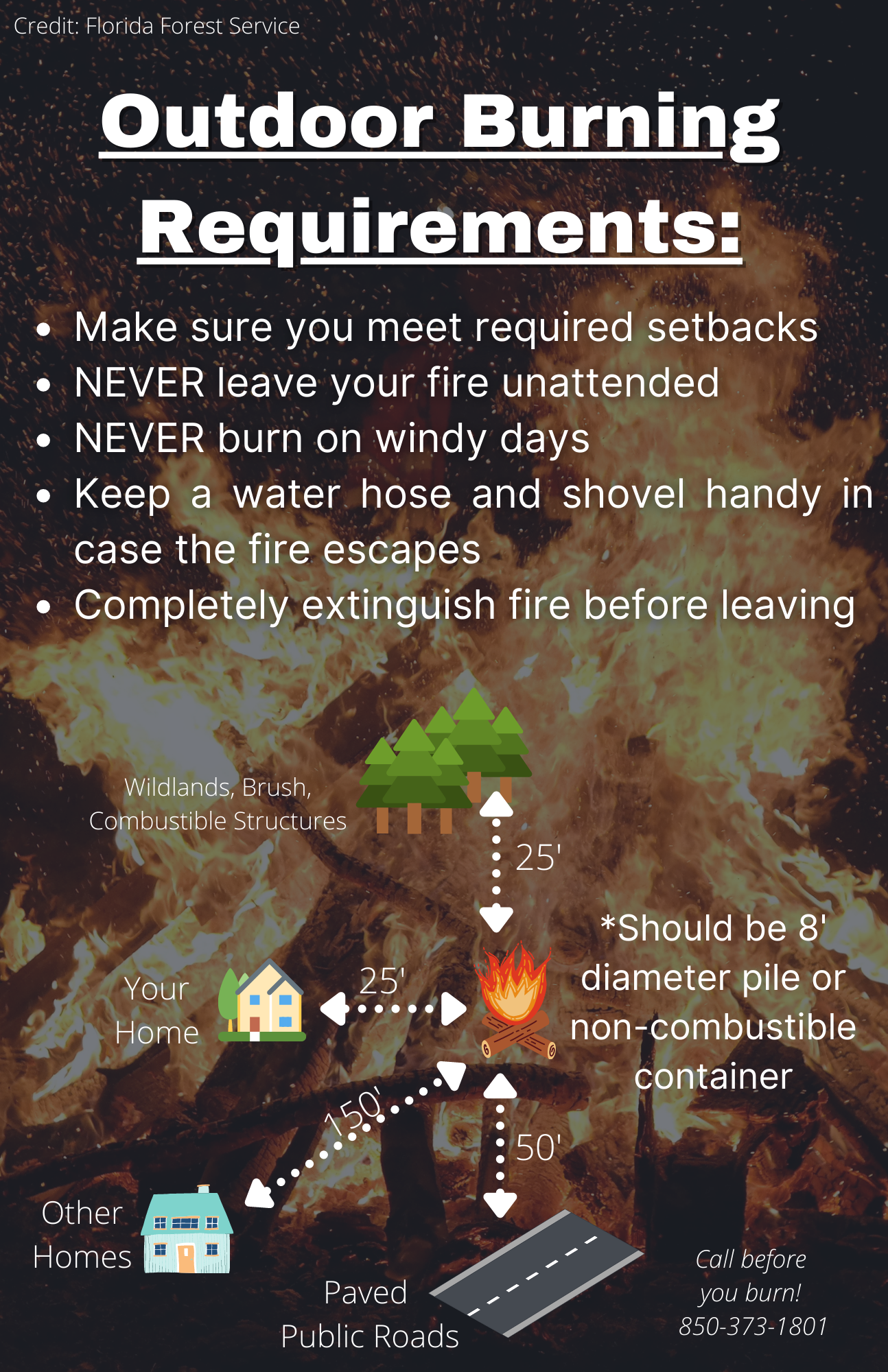 According to the Florida Forest Service, these are the legal burning requirements residents MUST follow to best prevent human-caused wildfires.